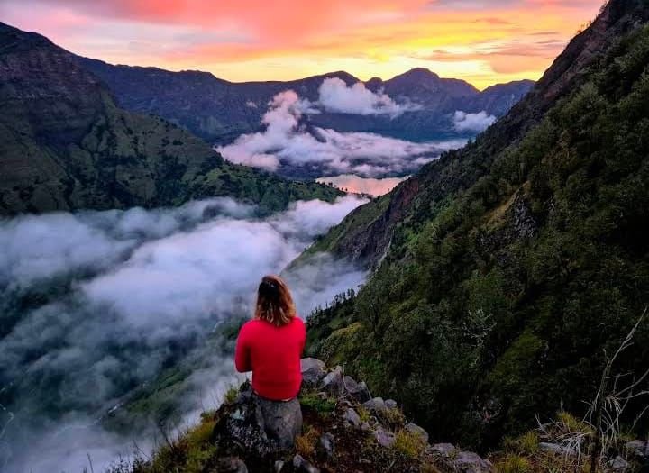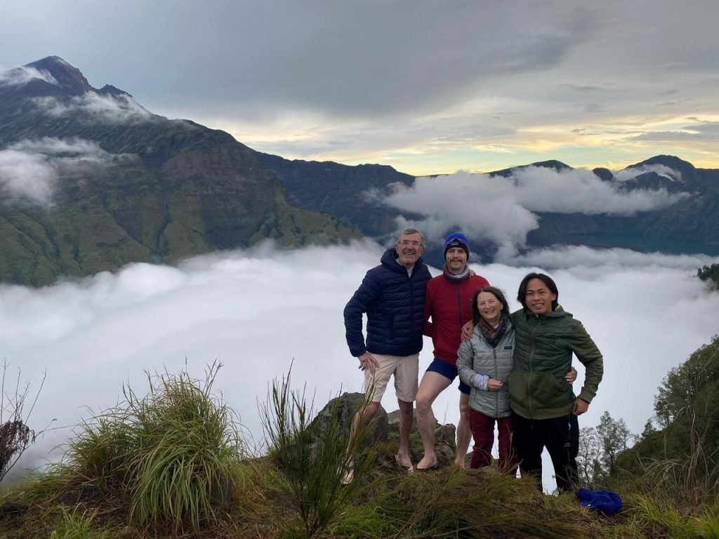 Early wake-up for sunrise overlooking Mount Rinjani, Segara Anak Lake, and Mount Agung